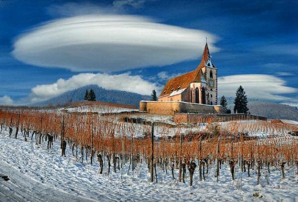 Lenticular clouds are stationary lens-shaped clouds that form in the troposphere, normally in perpendicular alignment to the wind direction. Lenticular clouds can be separated into altocumulus standing lenticularis (ACSL), stratocumulus standing lenticular (SCSL), and cirrocumulus standing lenticular (CCSL).