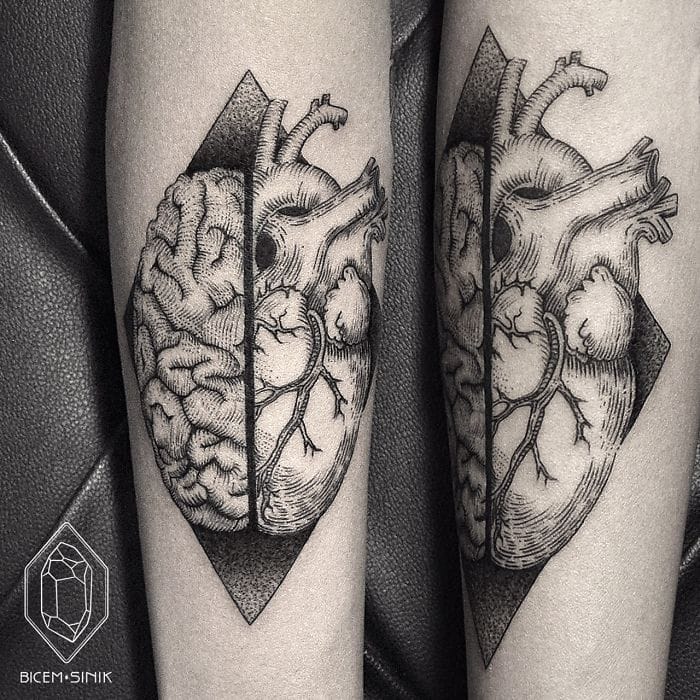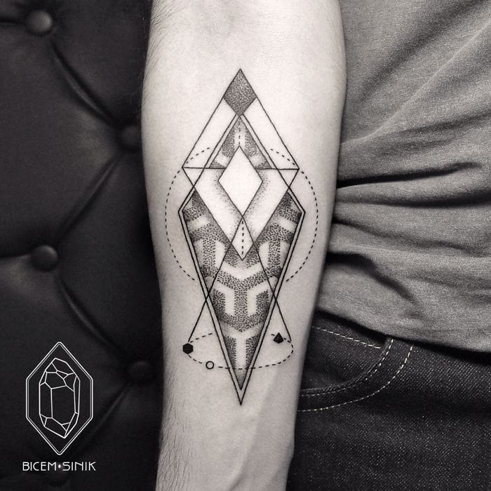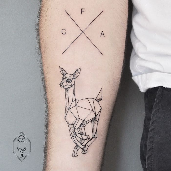 Dotwork Line Geometric Tattoos, prove that Bicem Sinik might be Turkey’s Dr. Woo. This young female artist uses fine monochromatic lines to create geometric animals and other minimalist forms. The difference between Bicem Sinik and Dr. Woo is that Sinik sometimes uses subtle dots for basic shading, creating some depth in her images.