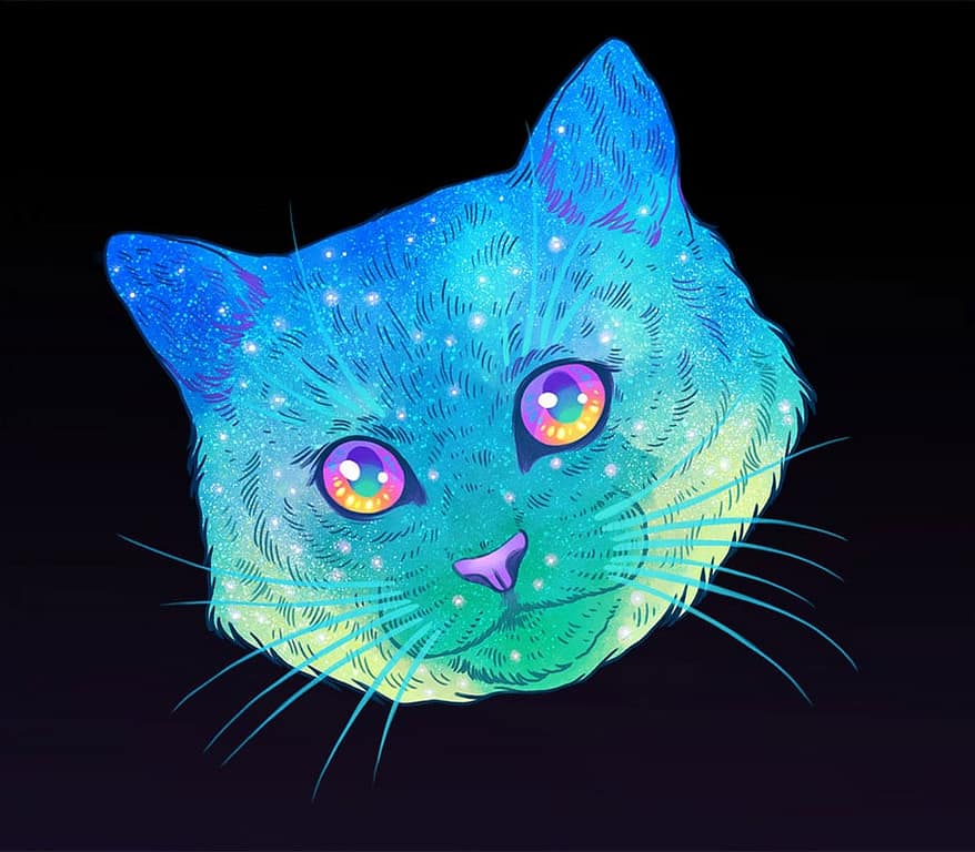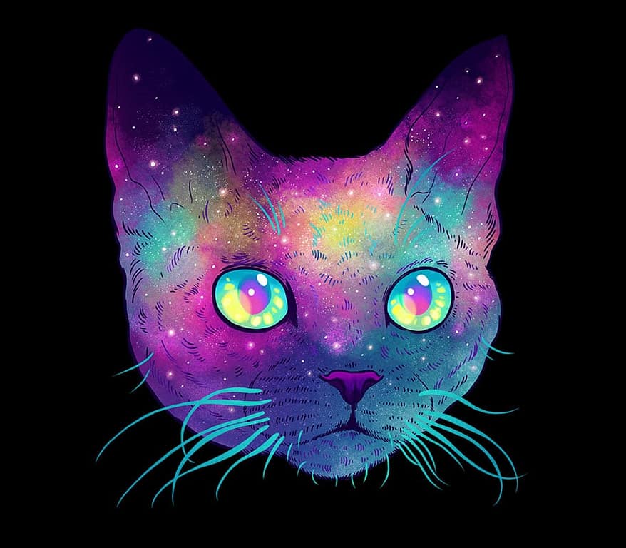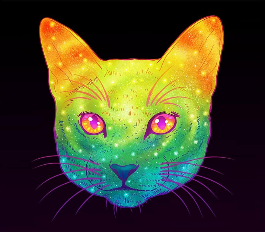 Are your cats full of intergalactic space? No? Must be one of those models, unlike these ‘Galactic Cats’ by Jen Bartel. These are portraits of cats overlaid on images of space. The illustrations were done in psychedelic colors that summon the feeling of, well, galactic space.