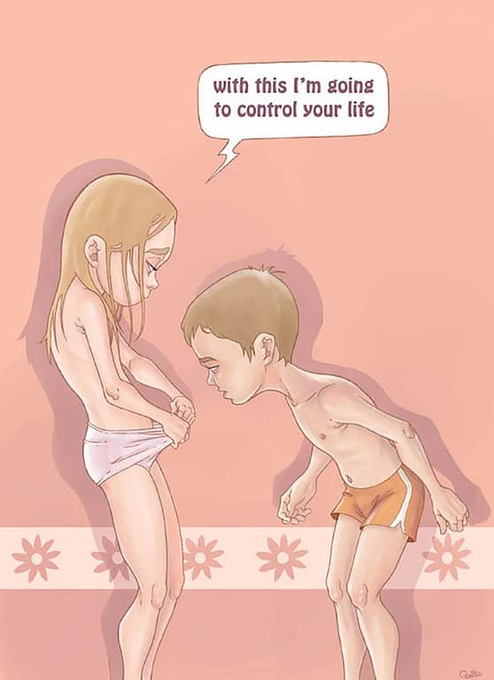 Spanish artist Luis Quiles is another activist who has created artwork to inspire deep contemplation, but his creations may be the most controversial yet. As you’ll view below, many of his illustrations center on the objectification of women, war and power, social media, religion, and the glorification of technology in the modern world.