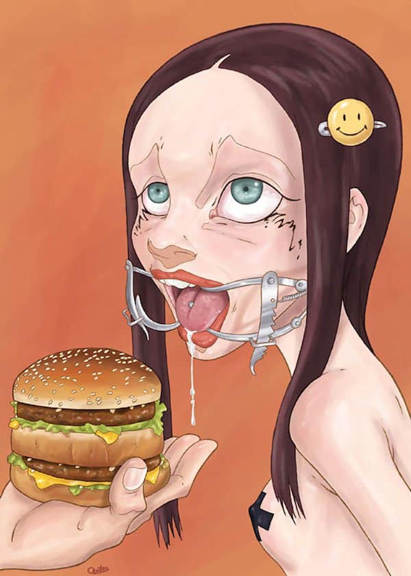 Spanish artist Luis Quiles is another activist who has created artwork to inspire deep contemplation, but his creations may be the most controversial yet. As you’ll view below, many of his illustrations center on the objectification of women, war and power, social media, religion, and the glorification of technology in the modern world.