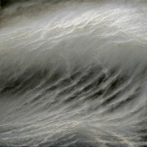 Yet I am interested in conveying how the ocean resonates, rather than depicting it. Constantly moving in a dance that mirrors the tempo of the human body, waves break in time with the beating of our hearts, the in and out of our breaths, like a metronome marking the present moment: now, now. My paintings are about being immersed in this present. For that reason, the horizon and any other reference points are disappeared, a move that detaches my work from the tradition of marine paintings, from Caspar David Friedrich, Turner, the Hudson River. Now we are not a distant observer, but all in.