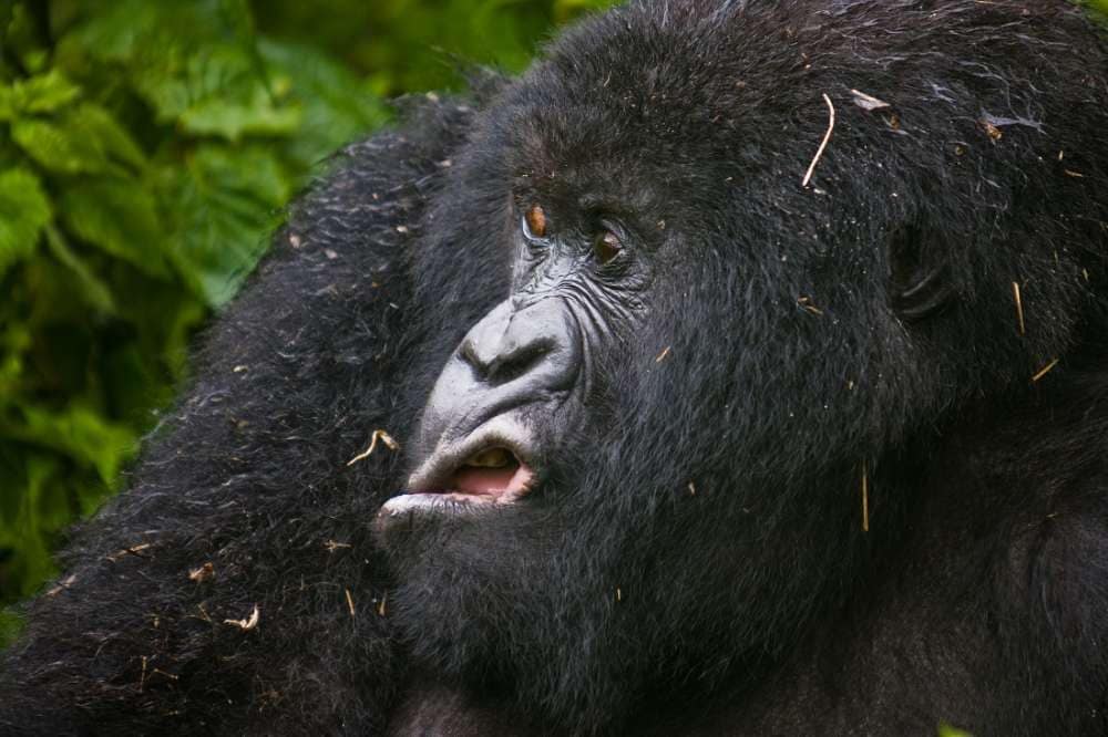 VIRUNGA NATIONAL PARK, RWANDA – UNDATED: Mountains Gorilla is making grimaces, as he came out of the bush after the rain, in Virunga National Park, Rwanda.