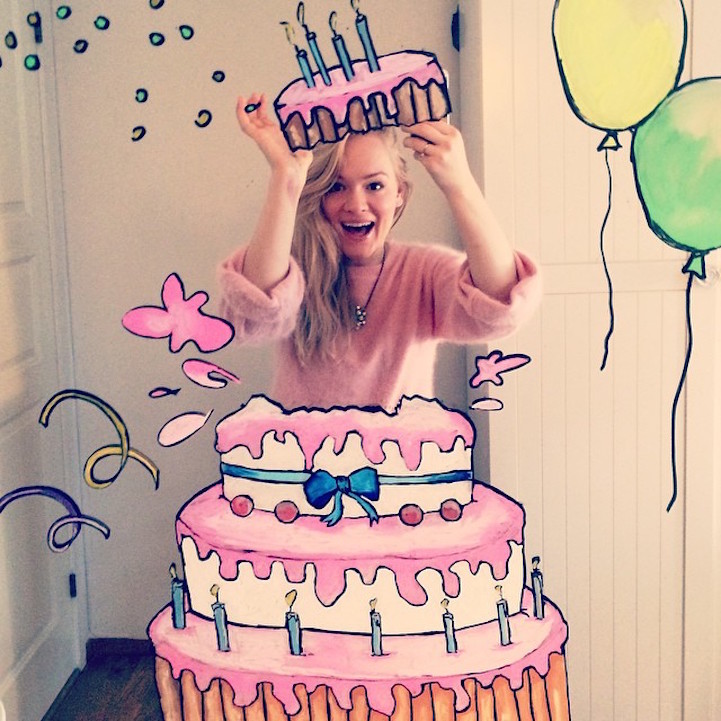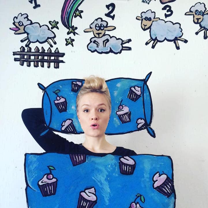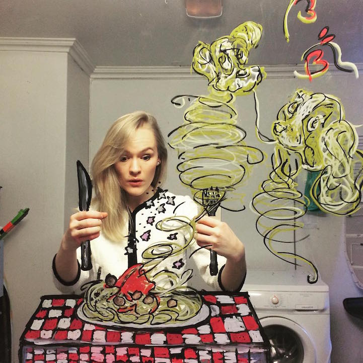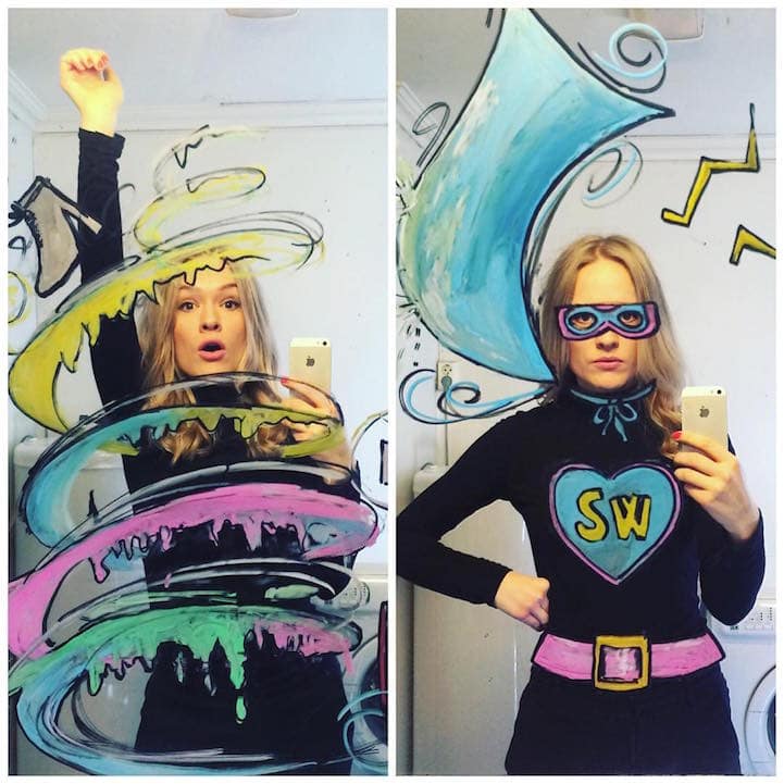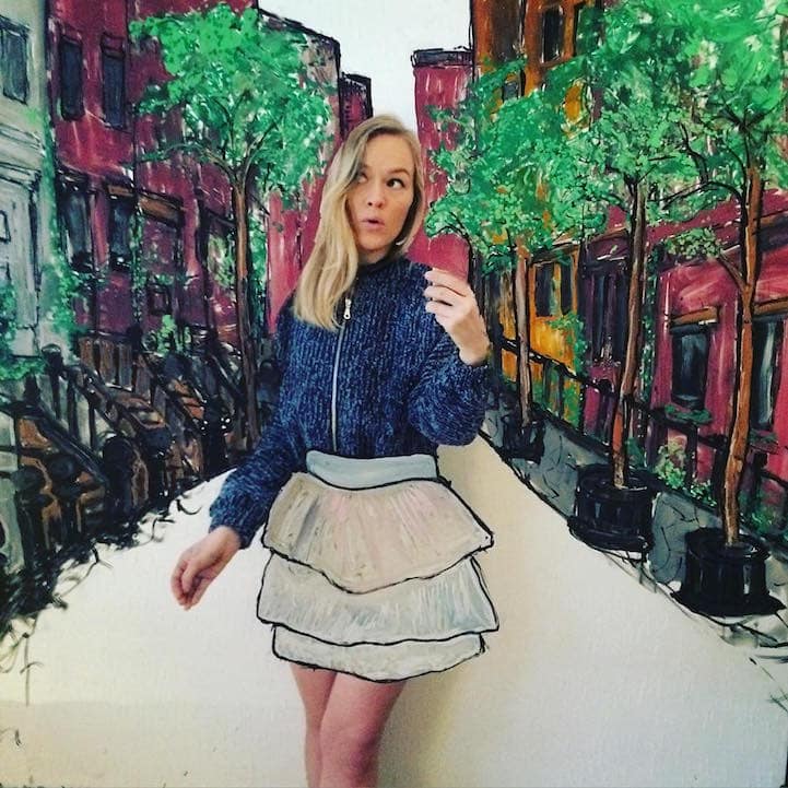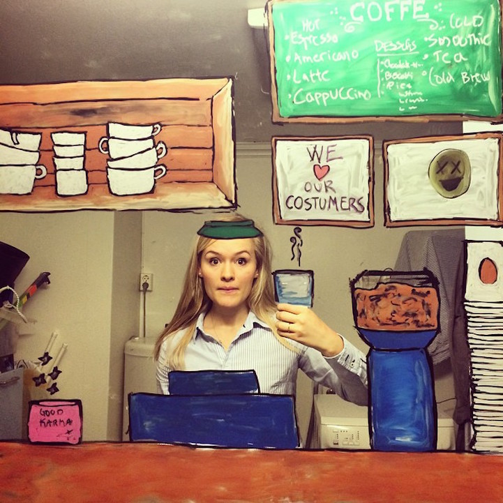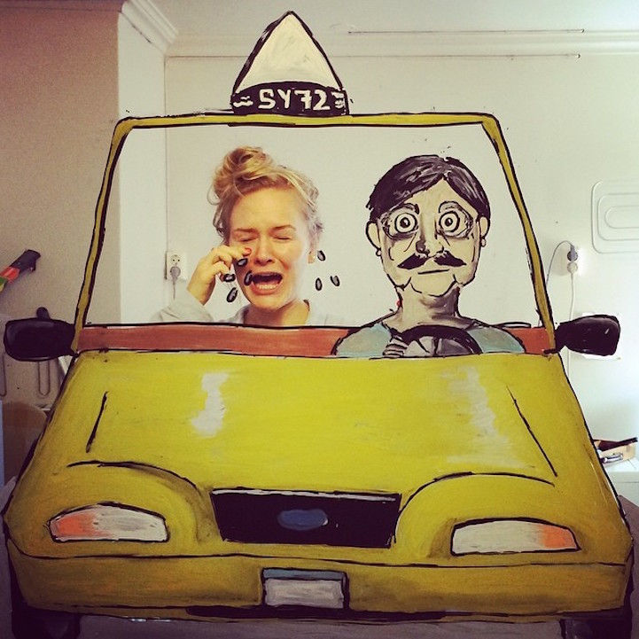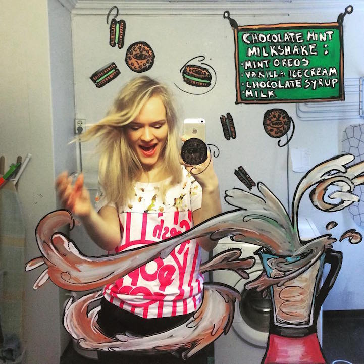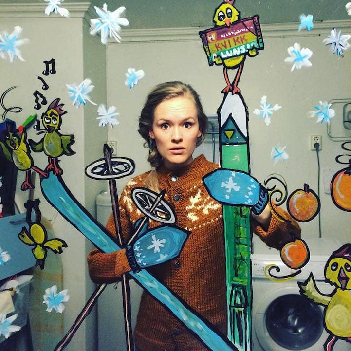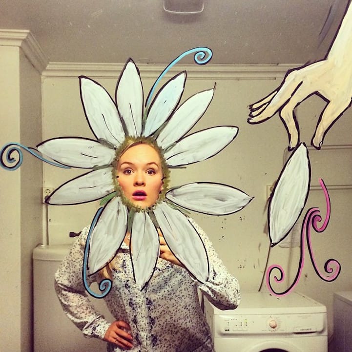 This woman took the concept of selfies, and literally turned it into an actual art form. She paints pictures on her mirror, creating humorous backdrops, and then plugs herself into the picture, snaps the selfie, and it’s an adorable and creative selfie! Truly, her creativity is endless!